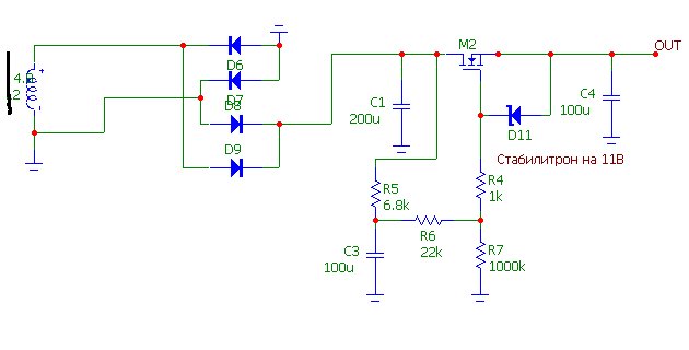 Данная схема была разработана "по малой нужде" путем обрезания всего лишнего от параметрического стабилизатора. Используется в ушнике от Лаконик'а, так как в комплекте конструктора лежал сгоревший транзистор, а ехать за ним было влом:( Фон не мерил, на слух ни на одни наушники не услышал. Полевик - IRF840. При моделировании схема показала лучший результат, чем опубликованная на сайте (ее брал за основу).