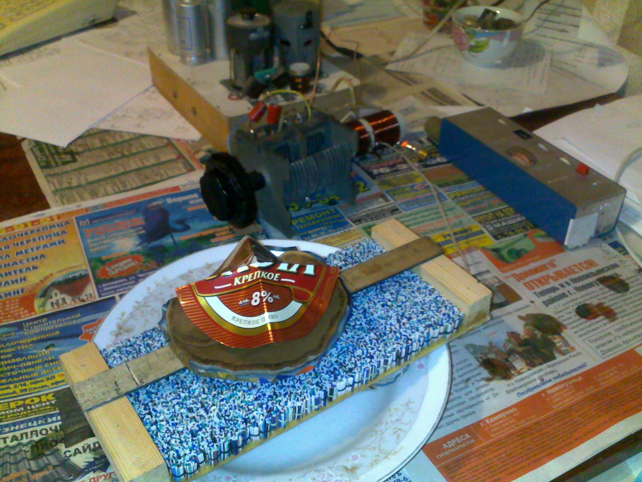 А вот этой конструкцией , основанной на акустическом резонансе с образованием ЭПС (Гребенников) , пытаемся изменить течение нашего времени (Машина времени )