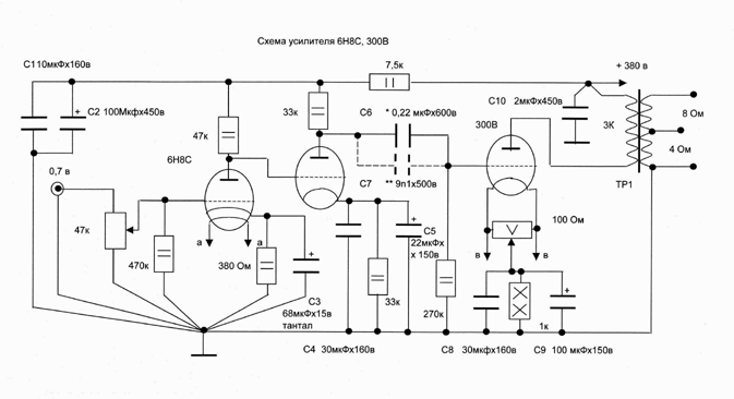 второй - для раскачки выходной лампы 300В. Саму лампу