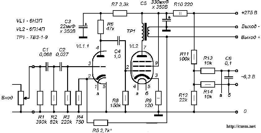 лучше ищи 6п43п и подключай их как на схеме, что по моей ссылке несколькими постами раньше. звук будет намного лучше, чем с 6п14п. (к тому же 6п43п гораздо долговечнее и, как правило, годны даже вынутые из поработавшего телевизора. с 6п14п такого не наблюдал - хлам 100%)