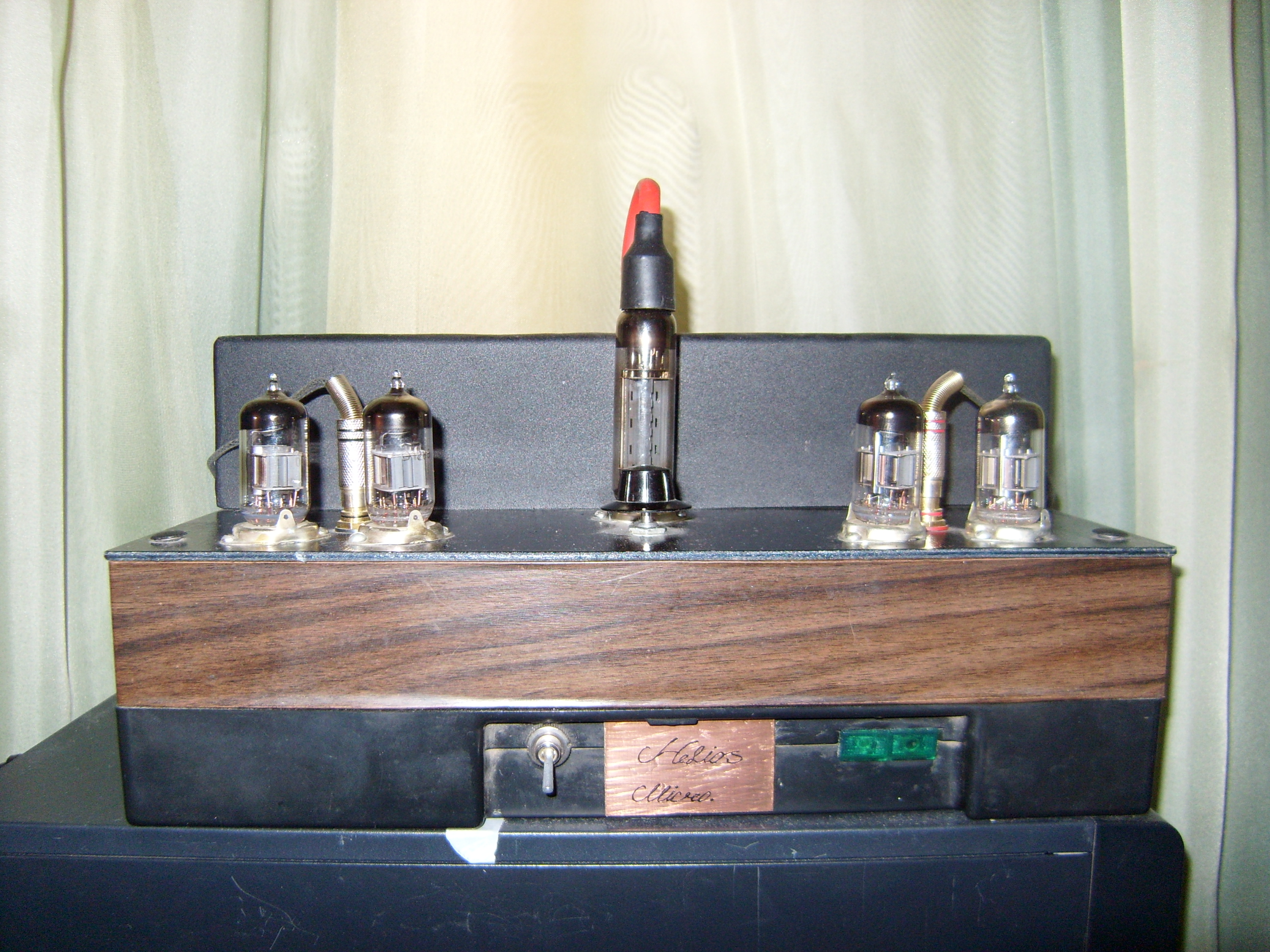 Вот сейчас тестирую усилитель. Работает отлично. Только изначально был очень большой фон. Долго мучился, а убрать фон удалось с помощью всего лишь мальнького пленочного контенсатора (0,047 мкф) в цепи анода драйверного каскада.