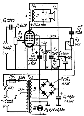 включена первичная обмотка 1 выходного трансформатора Тр1. Вторичная обмотка