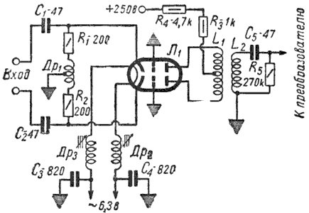 катушки L2 с сеткой лампы преобразователя приемника. Катушка L1 в предлагаемом