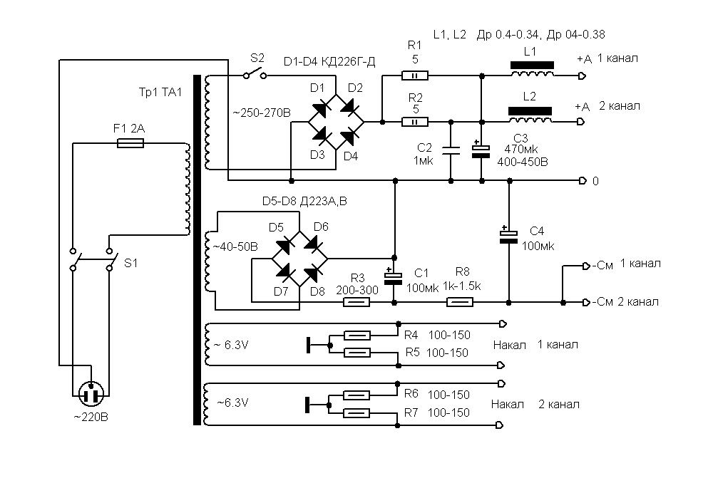 У этого трансформатора не совсем привычная вторичка, но такие «ответвления» были продиктованы имеющейся акустикой и конструктивно оказались вполне удобны.